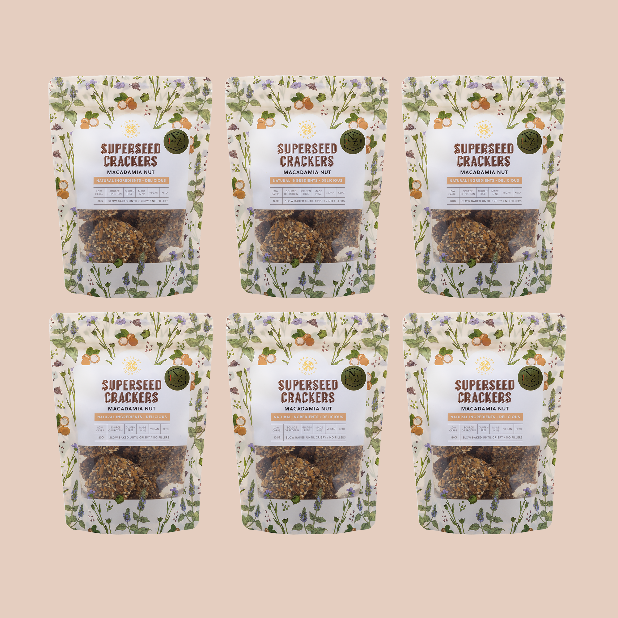 A classic buttery macadamia flavour, a perennial favourite cracker. Goes with everything. Try topped with greek yoghurt or marscapone and berries or summer stone fruit for a healthy dessert!